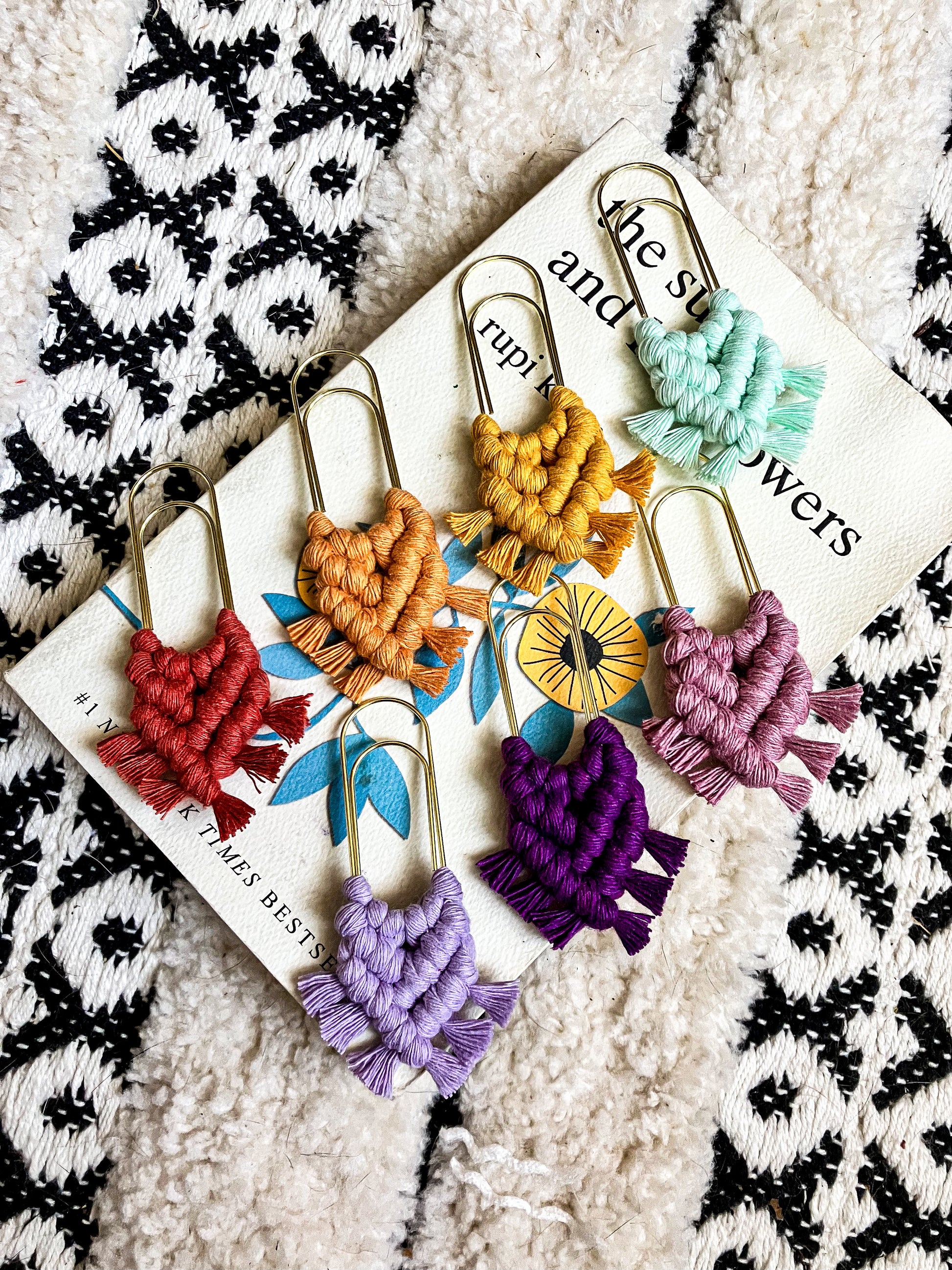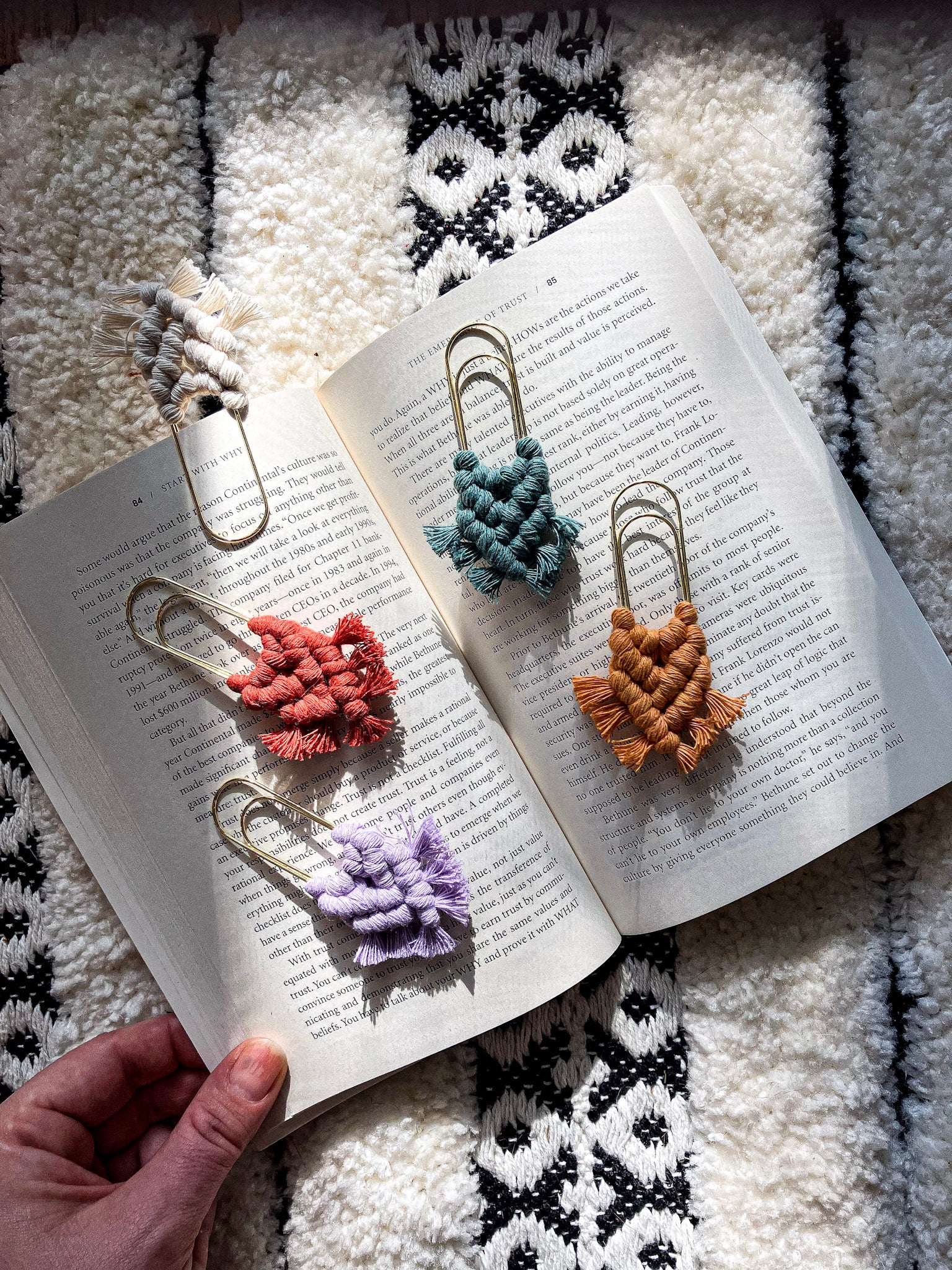Mark your favorite pages with style and keep your reading adventures organized with our handmade macrame paperclip bookmarks. Elevate your book-loving experience with a touch of handmade charm, making sure you never lose your place again. Discover the perfect companion for your literary journeys!