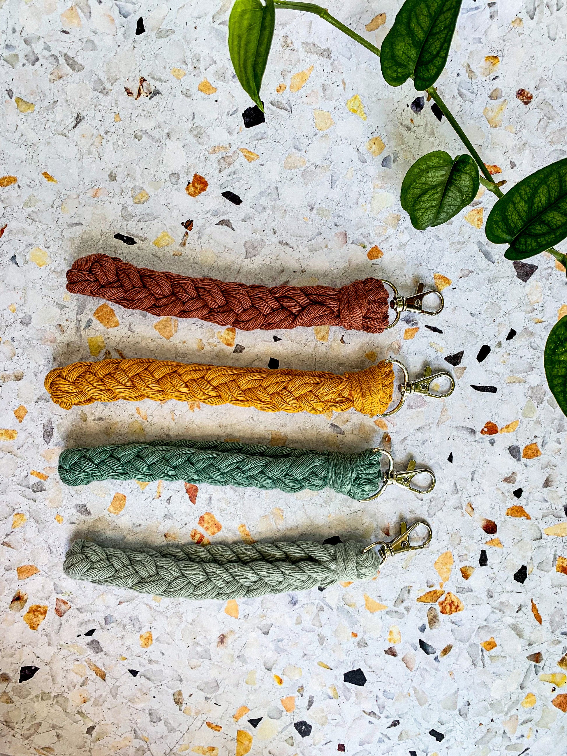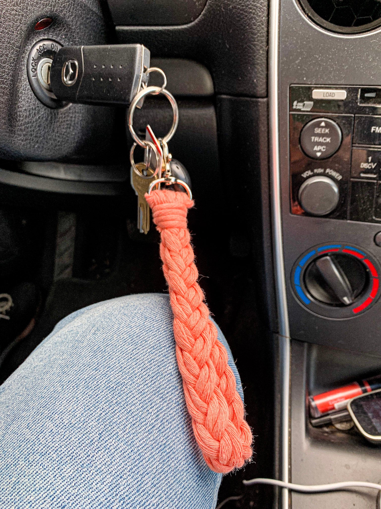 Choose from a range of colors and patterns to match your personal style. Don't settle for ordinary keychains when you can have a unique and trendy accessory. Order your Macrame Braided Wristlet Keychain today and elevate your key game.