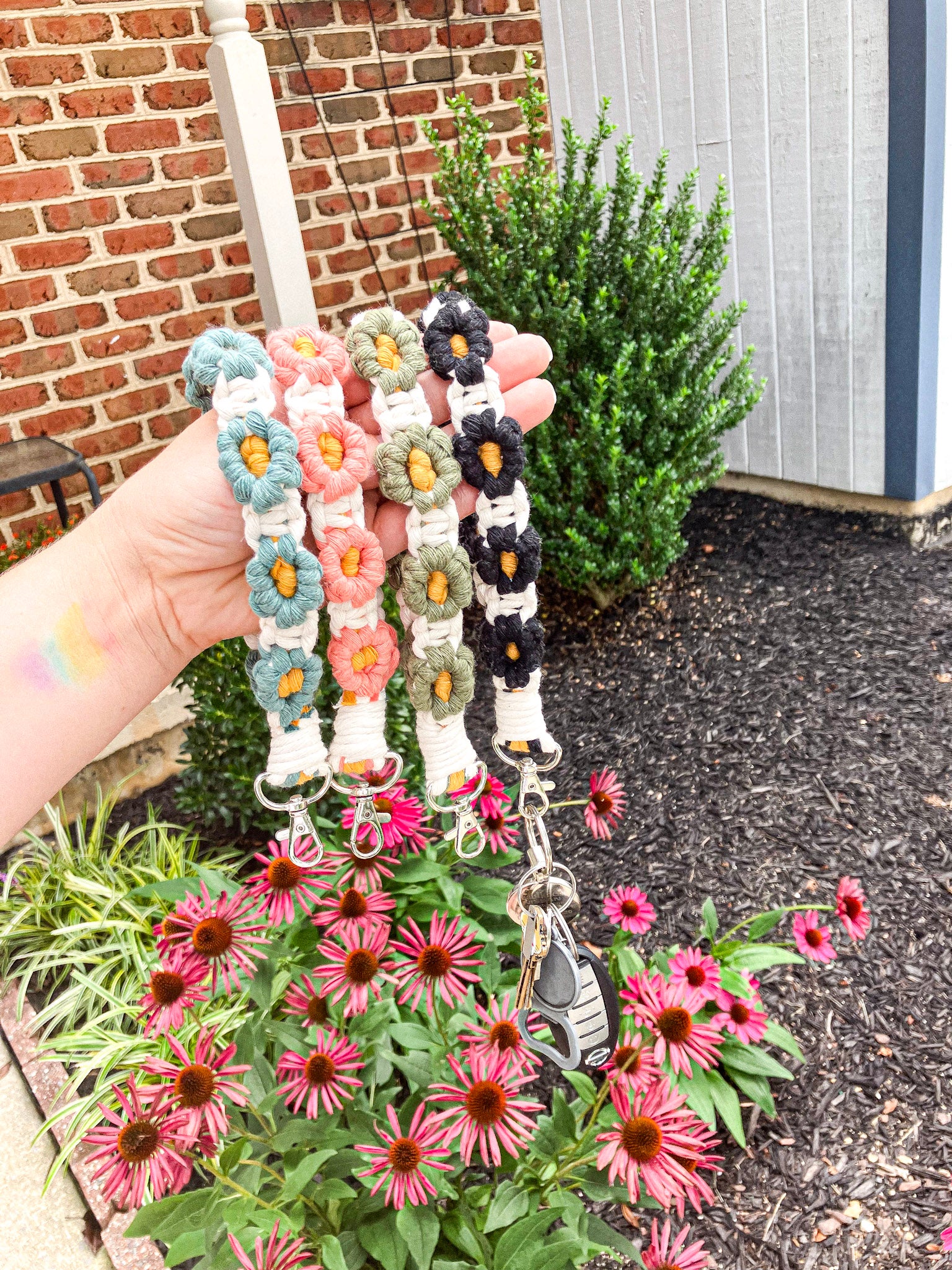 Elevate your everyday essentials with our macrame wristlet keychains