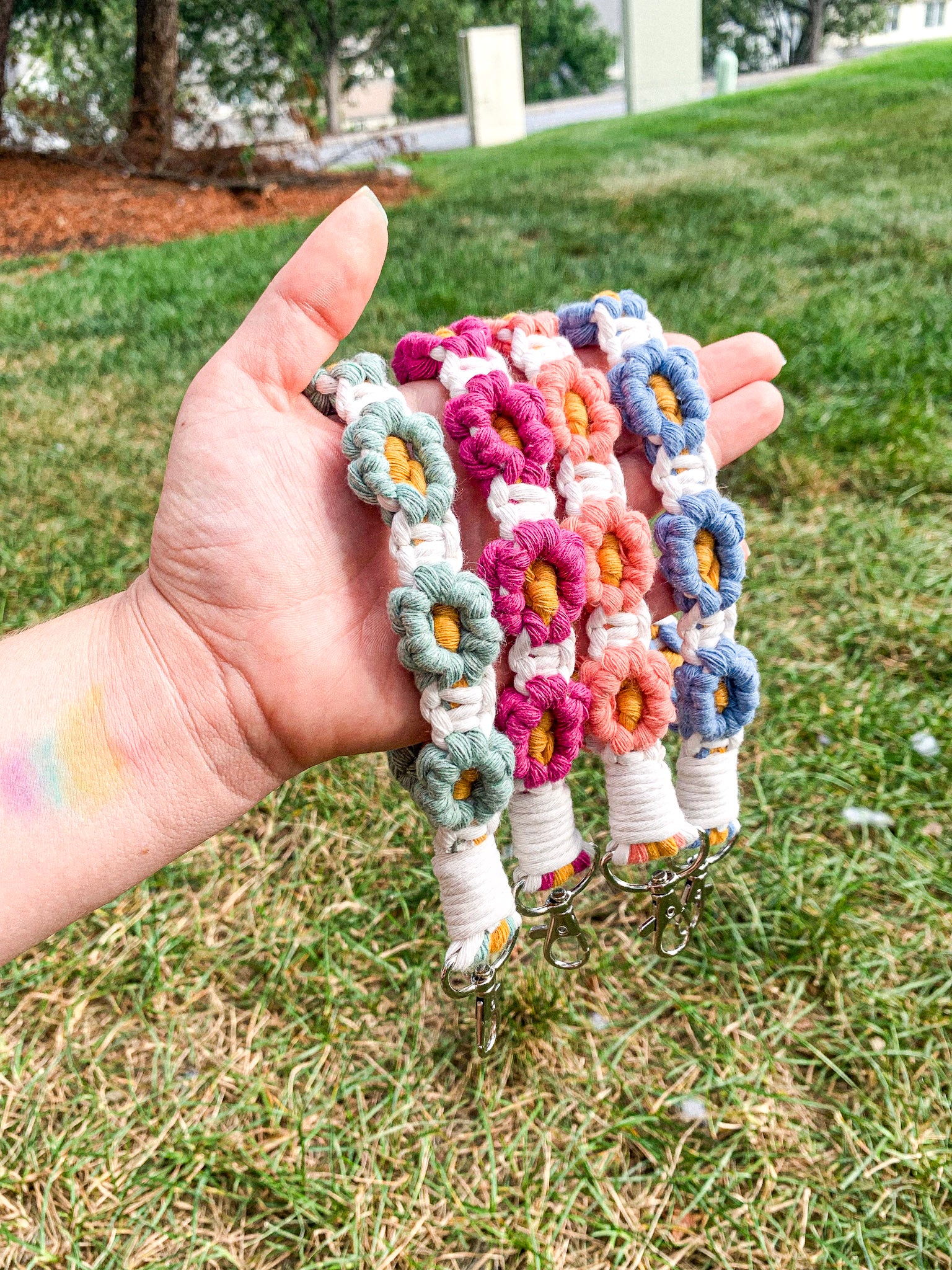 Macrame Flower Wristlet Keychain