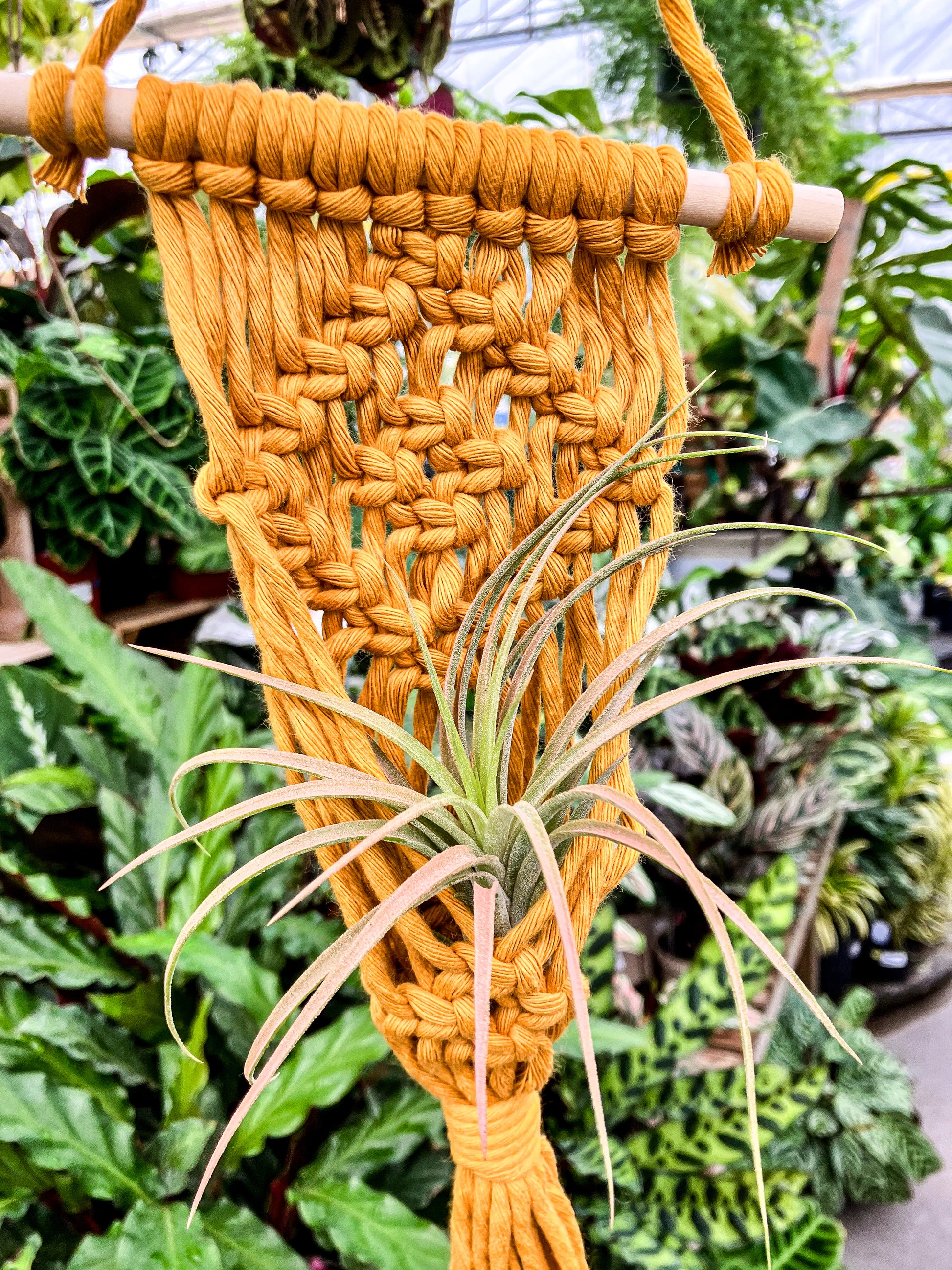 Attention all houseplant lovers! Our macrame air plant hanger is the perfect addition to your indoor garden. Handcrafted with natural materials and designed to be both beautiful and beneficial, this hanger brings a sense of calm and elegance to your living space.