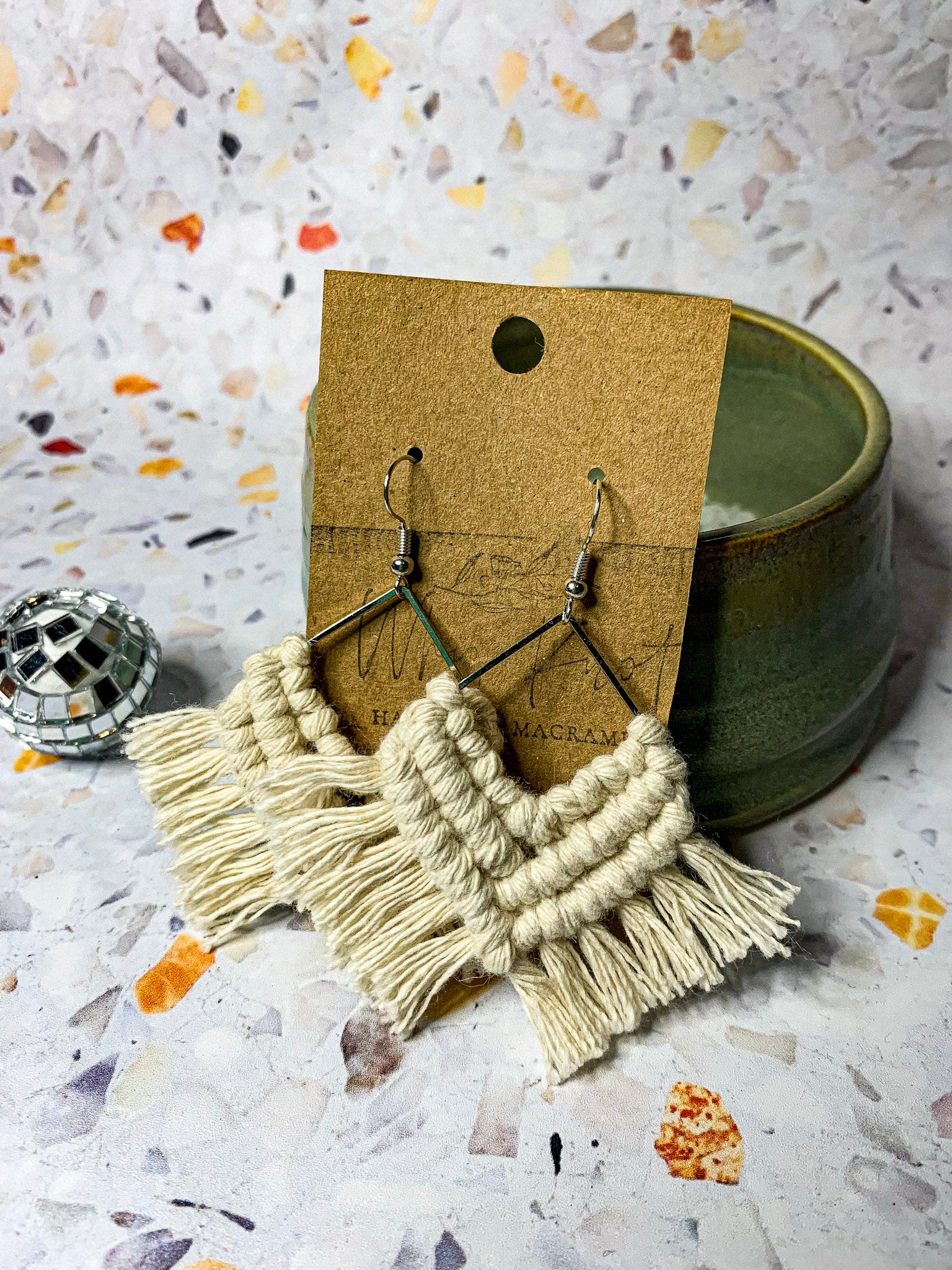 Whether you're dressing up for a night out or keeping it casual with a pair of jeans and a t-shirt, these eco-friendly macrame earrings are sure to become a staple in your jewelry collection. So why wait? Treat yourself to a pair today and make a stylish statement that's as good for the planet as it is for your wardrobe!