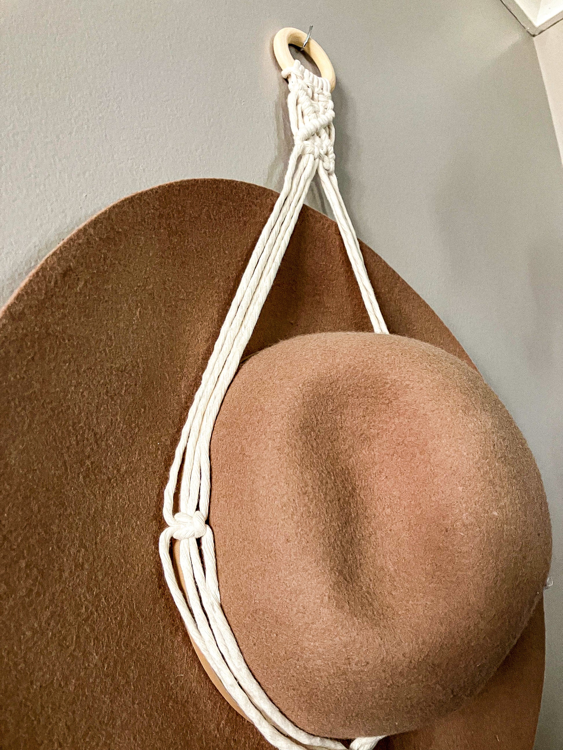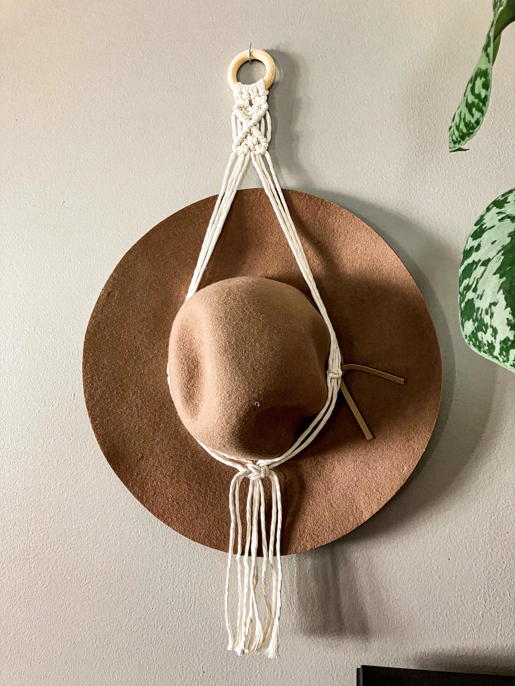 Introducing our Macramé Hat Hanger: the perfect solution for storing and displaying your favorite flat brim style hats!