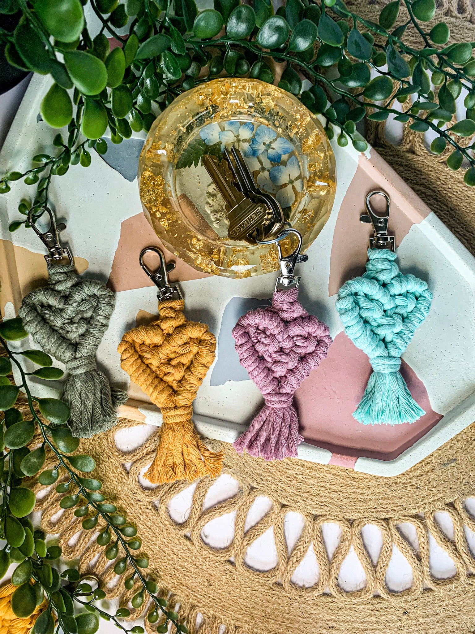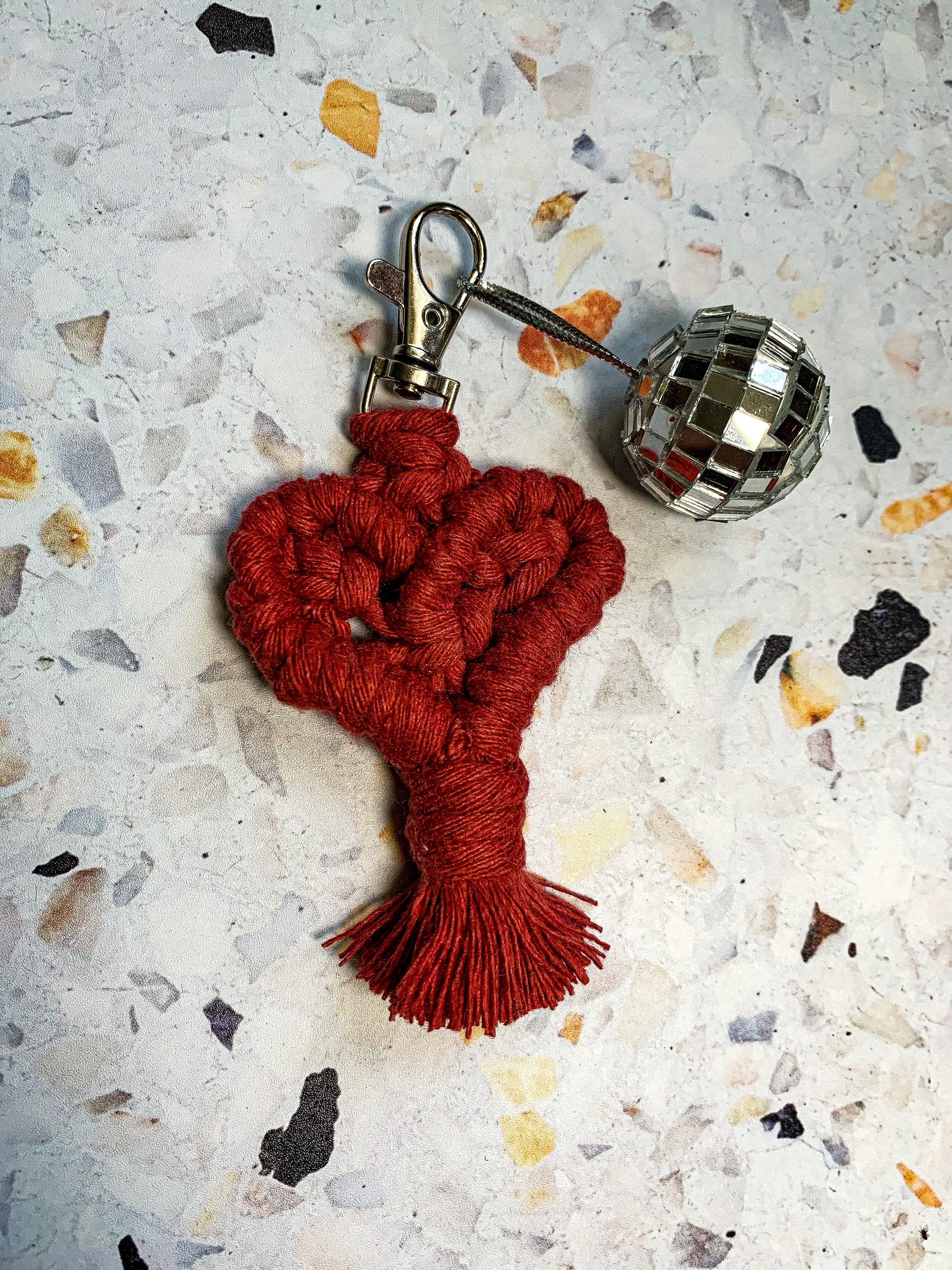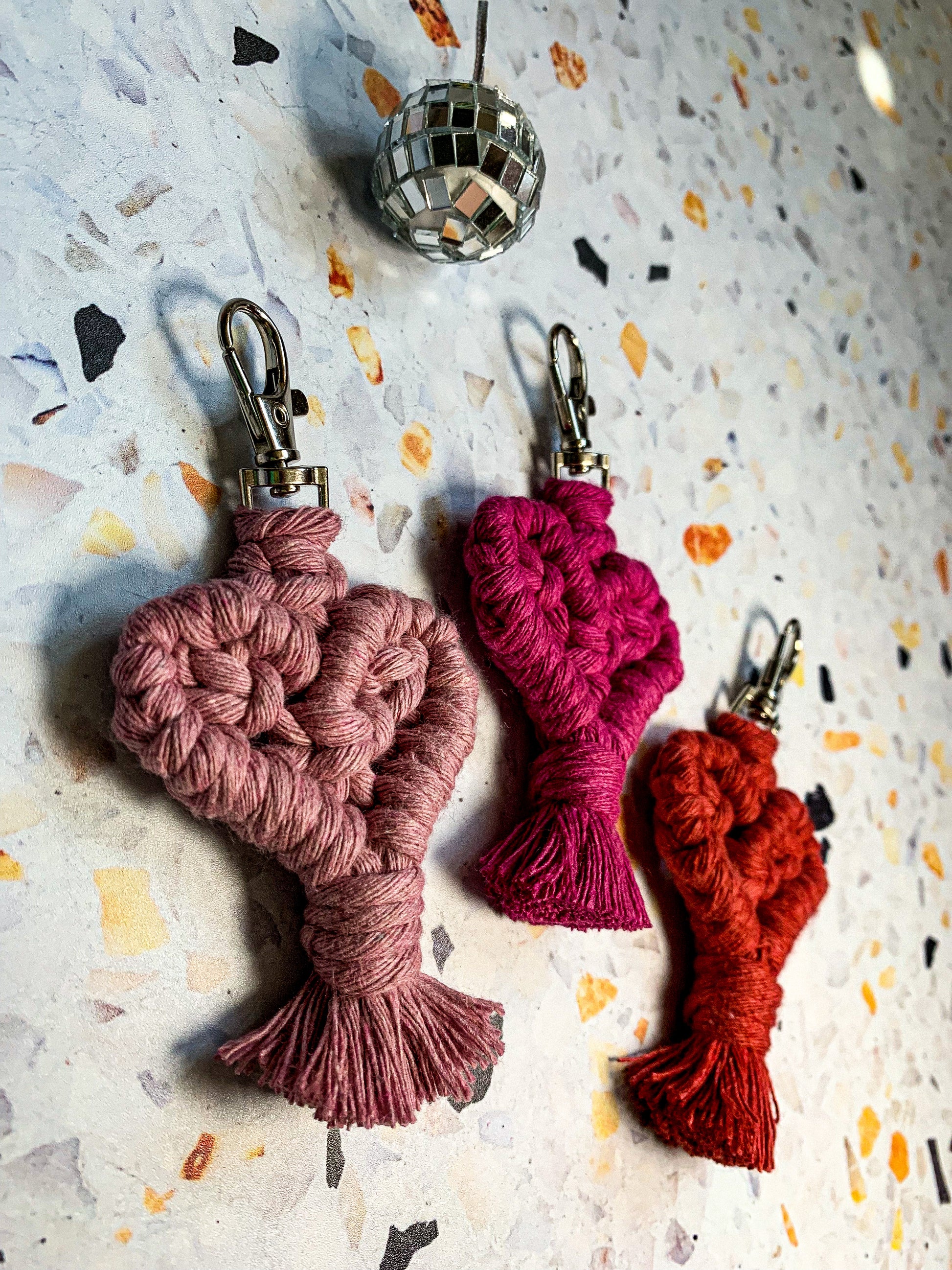 Add a touch of love to your keys or bags with our adorable macrame Mini Heart Keychain. Handcrafted with care using zero waste recycled cotton cord, these keychains are not only eco-friendly but also stylish and unique.