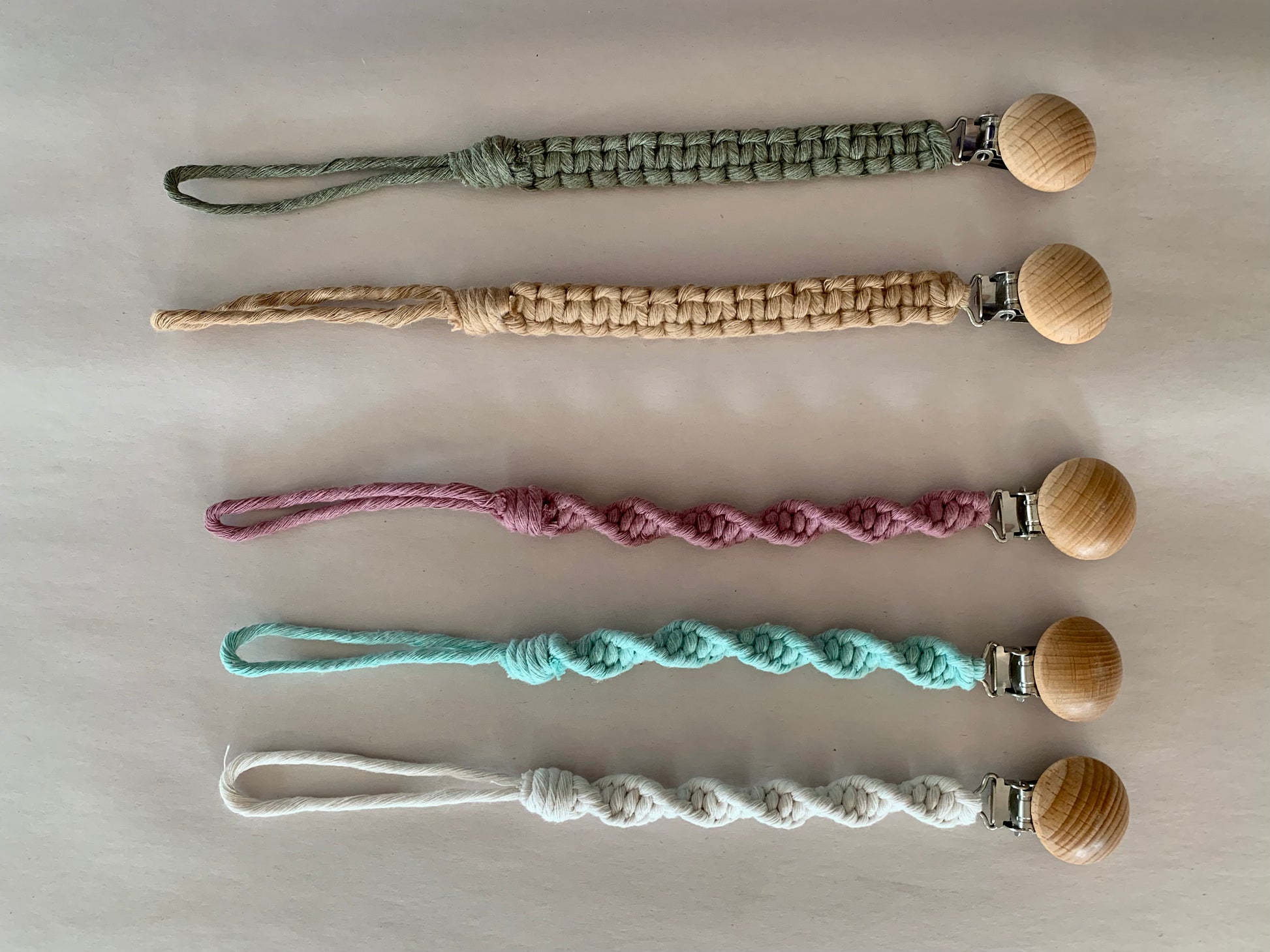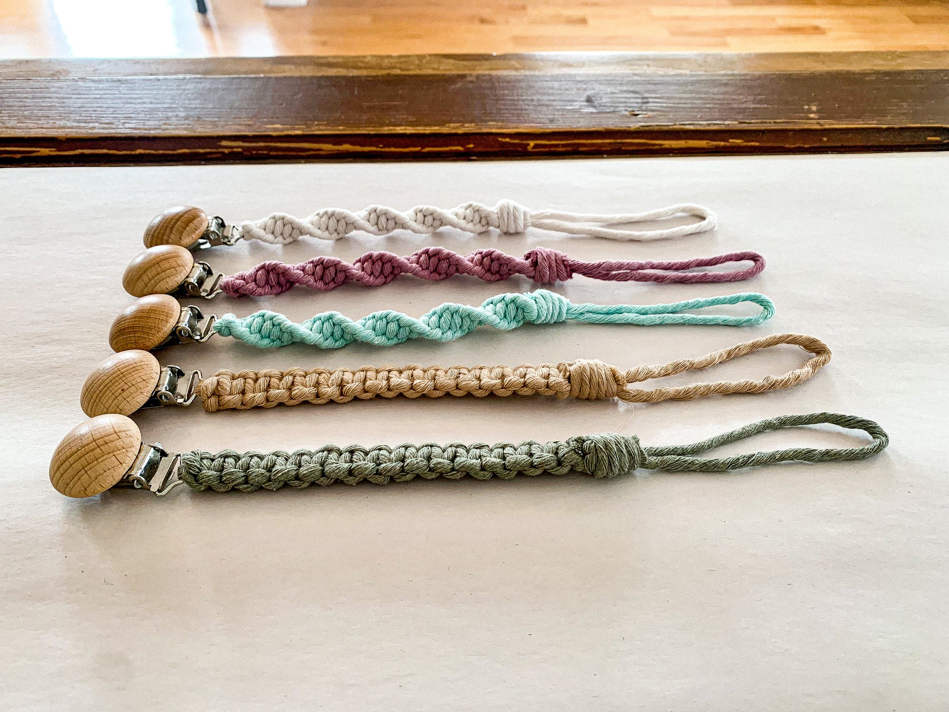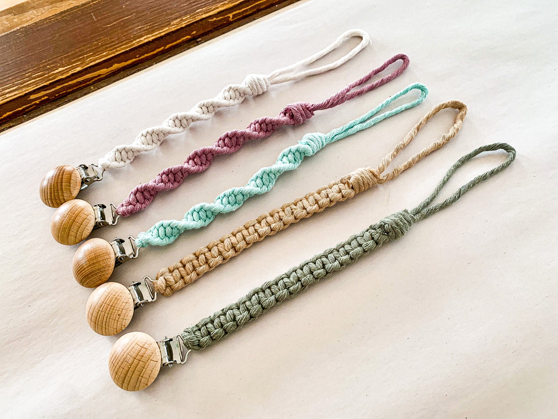 Perfect for your infant or toddler who can’t seem to keep their binky in their mouth. No more dropped binkies with your brand new macrame pacifier clip!